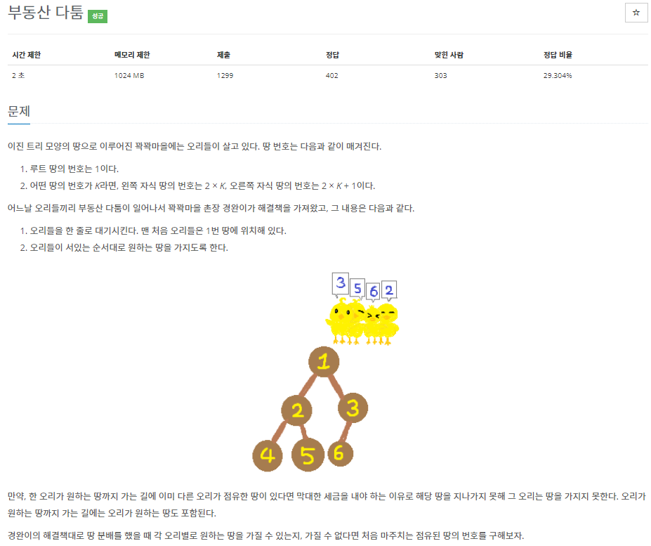 그래프를 생성하지 않고 각 오리의 원하는 땅에서부터 시작해 루트까지 가려면 현재 노드의 부모를 찾아가는 방법을 찾아야 했는데 힌트는 문제에 있었다!