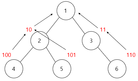 현재 노드에서 오른쪽으로 한 칸 시프트 하면 부모의 노드가 된다.