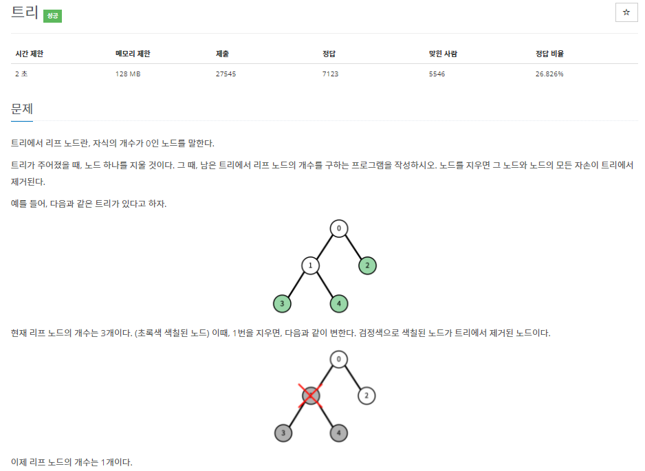 즉, 입력 단계에서 루트가 -1로 주어지는 것만 염두에 두고 평소처럼 자식 노드들을 인접 리스트를 생성하되 마지막 입력인 지울 노드만 별도로 받았다가 탐색 전 경로를 끊어버리면 된다.