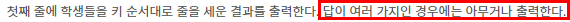 물론 위 조건대로 세우면 다른 방법으로도 줄을 세울 수 있지만 문제 속 지문에서 상관없다고 하니 아무거나 출력해주도록 합시다!
