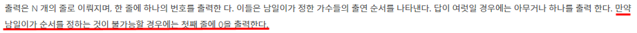 // 사이즈가 N개가 아니다 == 모든 가수의 순서를 정하지 못했다!