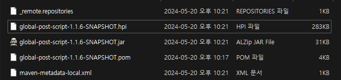 위 플러그인을 설치 후 오류가 발생하고 있는 global post script를 clone받아 pom.xml에 해당 의존성을 추가해줍니다.