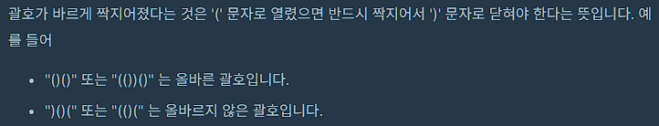 (의 짝을 만나려면 )를 찾아야 하고, )의 짝을 만나려면 반드시 앞에 (가 있어야 합니다.